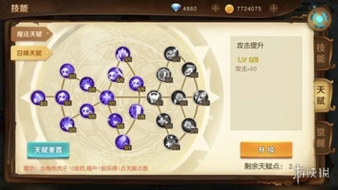 天赋的选择将直接影响未来的职业发展方向,并解锁新的技能。