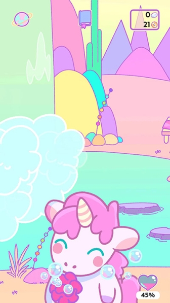 玩家需要喂食、洗澡、宠爱独角兽,增加它们的好感度;通过与独角兽的互动,建立深厚的感情,并解锁更多的养成内容;