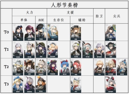 人形根据职业的T度排名如下: