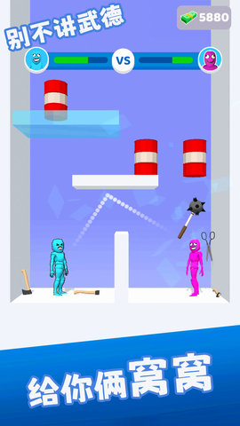 《别不讲武德》是一款兼具策略性的闯关游戏,玩家将化身一个呆萌的布娃娃角色,通过操控火箭、石块、匕首、保龄球等各类道具,向对手发起投掷攻击。游戏规则清晰明了,核心玩法就是比拼谁能用最具创意的方式率先击败对手,从而斩获胜利。