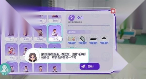 7、点击右上角身份按钮,切换教师、网红等角色体验不同生活。