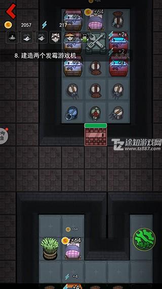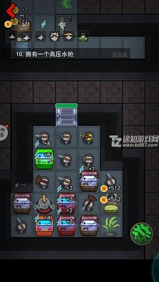 电力一定要多,中期6台就可以,然后升级电力为主,然后摆放矿石赚钱 ,钱多了可以继续升级门或者武器,这时候4台水泡枪基本无忧。