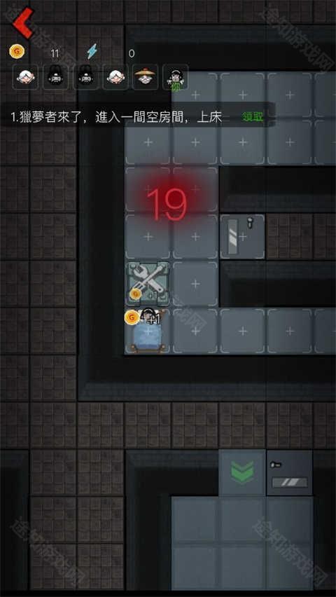 5、然后还可以通过升级小床,门来防止猎梦者进入,同时还可以建造多种道具帮助自己击退猎梦者;