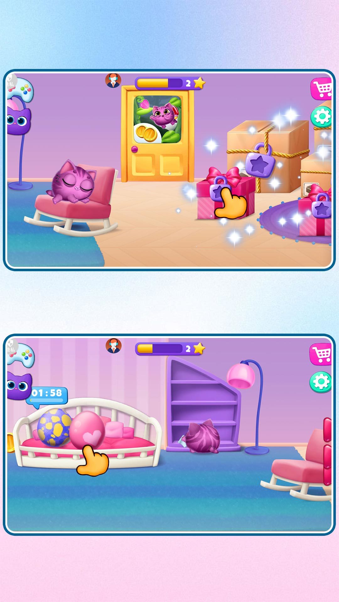 1.自由装扮宠物的生活环境,玩家可以设计可爱的家居风格,打造独特的温馨空间,提升小猫的幸福感。