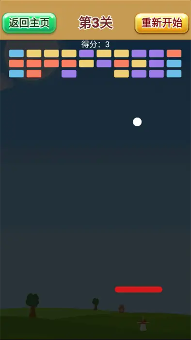 3、还能通过木板进行反弹撞击彩色砖块以消除,仔细观察小球掉落位置进行反弹。