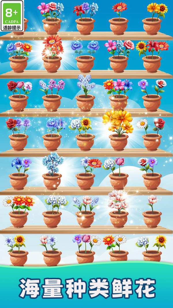 2、色彩斑斓的游戏画面,精美的花朵设计让玩家感受到视觉的愉悦。