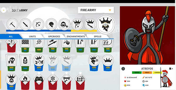 3、火柴人单位众多,供玩家自由选择。在战斗中,玩家可以自定义自己的部队,组建超级队伍。