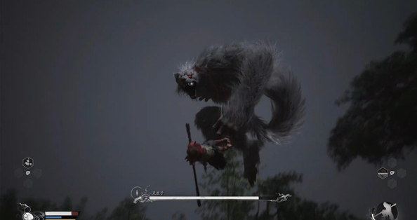 应对讲解:如果不慎中此招,在boss将我们从空中砸向地面后,第一时间远离自己的掉落位置(奔跑+闪避皆可),因为投机后灵虚子会接一个伤害极高的啃咬动作,不过动作较慢,还是比较好躲过的。