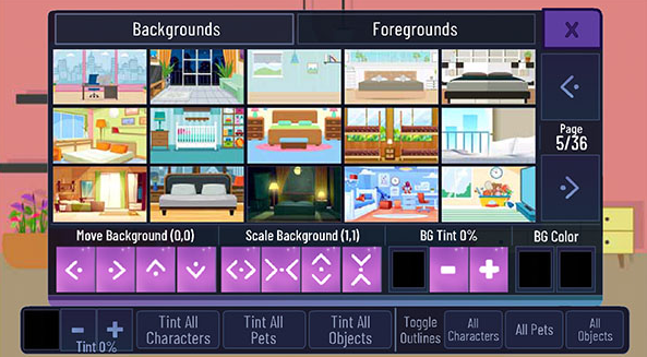 3、自由创造任何场景,前景后景全部都可以更换,添加或者减少物品,创造你喜欢的场景。