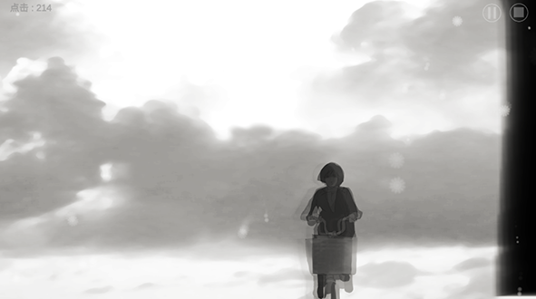 2、游戏的玩法也挺有创意的。中期开始随机出现剧情,玩家需要做的是在每一幕剧情进度条完结前,点击到正确的线索来完成这一幕的任务,推动剧情的发展。比如闹钟响了,你点闹钟,关掉;电话来了,桌上,床上翻翻,找出手机;列车飞驰过的时候,在恍惚交错中正确点击,回忆起对方的影子;自行车越来越快的前行中,点击左右切换,躲避树木前进……等等