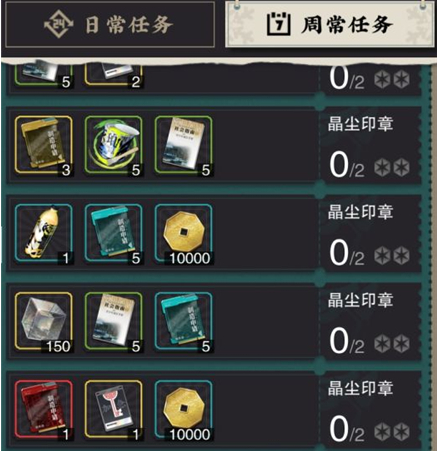 (1) 日常任务60个,周常250个