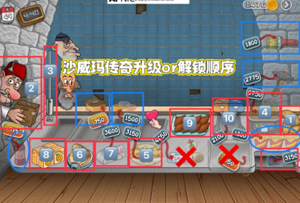 升级饼皮,更快给沙威玛配菜,减少点的次数,前期没钱按需要升级升级自动放面饼的机器,也是一次升级,前期按自己需求升