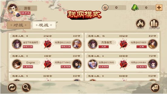 所谓高手过招,招招致命。但是高手们绝对不能闭门造车,需要与别人进行切磋,才能让自己的棋艺更上一层楼。于是我们可以在联网模式下,与全国各地的棋艺高手进行对弈,联网模式分为:棋技博弈、五分钟场、十分钟场和二十分钟场;当然了,进入联网模式的话需要花费100个君子竹。