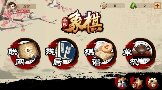 1、今天小编要给大家介绍一个益智休闲类游戏—《全民象棋》,一场高手与高手之间的较量即将展开。首先进入游戏后我们就可以看到下面的游戏界面:游戏目前分为四个大模块供大大们进行游戏,分别为:联网模式、残局模式、棋谱模式和单机模式。