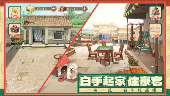 4、初入游戏主界面,你会发现自己身无分文,仅有一所勉强能遮风避雨的破旧房屋。