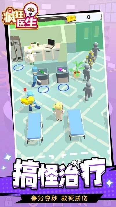 《疯狂医生》是一款模拟类游戏,在游戏里你能化身为救死扶伤的医生,去完成各式各样的挑战任务。不同科室会有不同的患者,你得安抚好他们的情绪,还要为他们进行治疗,如此一来才能让你的医术愈发精湛,成为一名受大家欢迎的医生。
