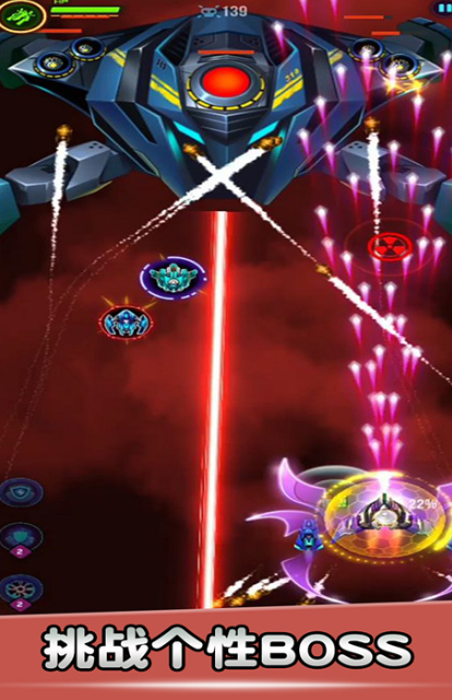 2、使用技巧躲避走位,挑战更多的战斗玩法,升级自己的战斗机伤害。