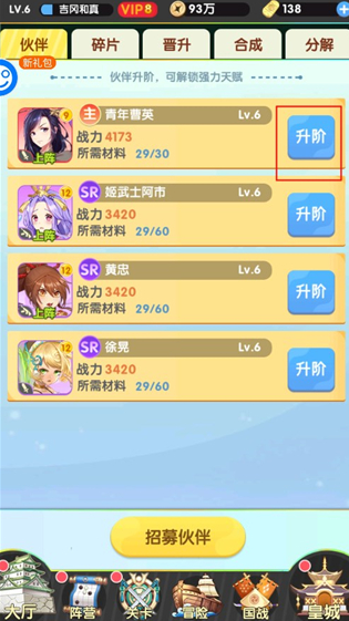 3、使用相应数量的升阶卷轴升级伙伴即可提升战力。