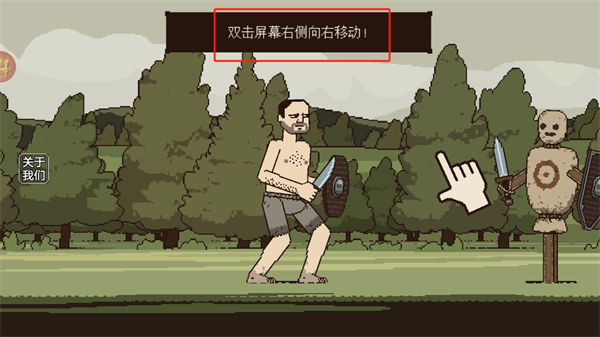 1、进入游戏场景后,会有演示环节。第一步,点击屏幕右侧区域,将角色向右移动。