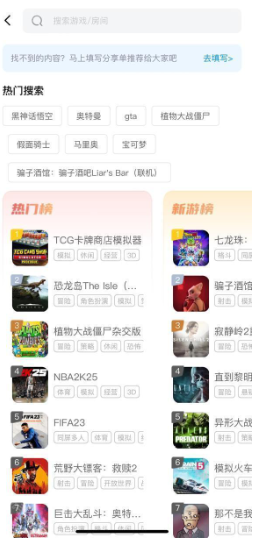 1、首先玩家可下载并打开【鲸云漫游】手机app,找到游戏搜索栏。