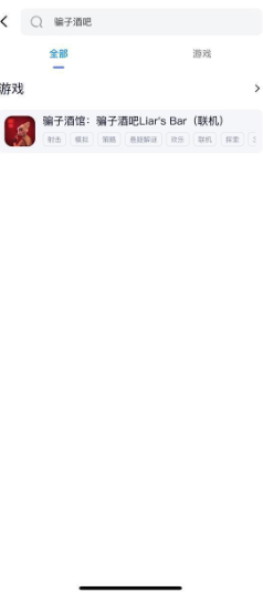 2、在搜索栏中搜索“骗子酒吧”,下方跳出骗子酒馆的游戏内容,点击进入。