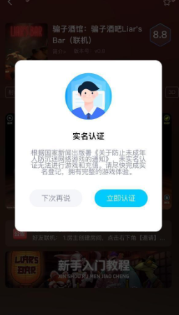 5、登录完成后,会跳出实名认证界面,点击“立即认证”。