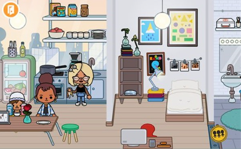 TocaWorld免费版中仅有两个可选择的新地点:美味的 Ro-Bo Café 紧跟时尚潮流的设计商店,你可以在店内挑选物品装饰自己的房子。