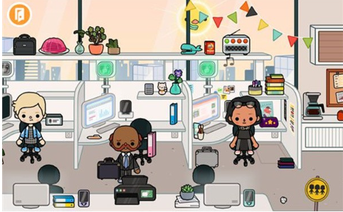 2、我们随便点击一个大楼即可进入其中,例如我们选择商业用楼,进来后发现里面是一间办公室,可以看到很多办公用品,还有很多工作的人员。
