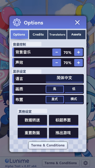 4、接下来的游戏界面就差不多都是中文字体啦,在这个设置界面,在这里你可与设置各种游戏相关的选项。