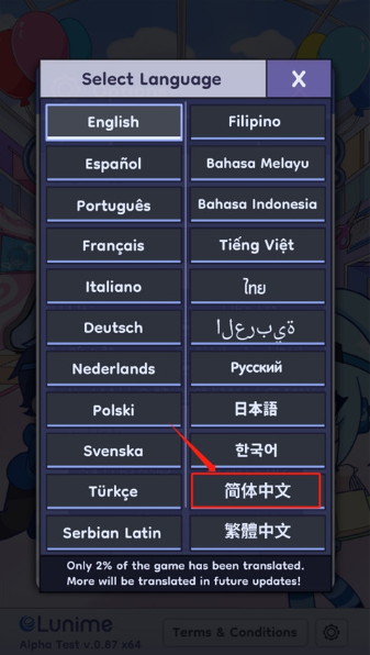 3、在该页面玩家可以选择“简体中文”。
