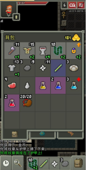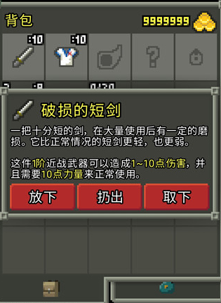 可以查看及使用武器、防具、卷轴、种子等道具。