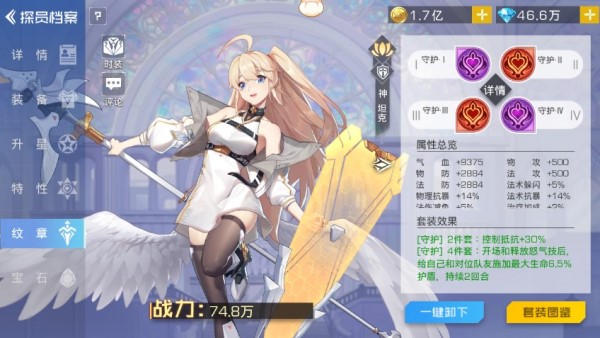 单个探员可以佩戴4个纹章,纹章的属性能够大幅提升探员的角色属性和战力,同时纹章还可以组成套装,并获得套装技能,当纹章套装达成二件套和四件套时会获得不同的套装技能
