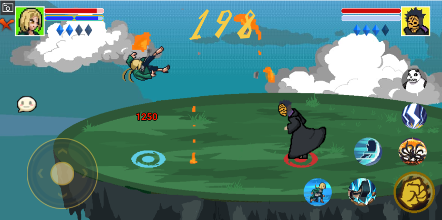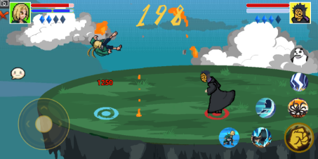 4、采用2D像素格斗形式,完美还原火影忍者中的战斗特色,包括刃具大战和通灵兽的召唤。
