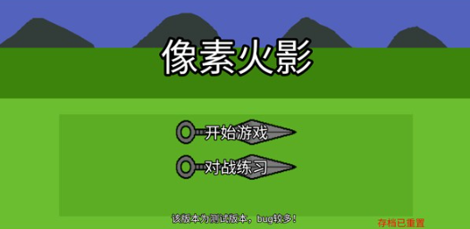 1、下载安装好像素火影单机版,运行游戏,在这里我们可以直接选择开始、对战或者退出游戏;