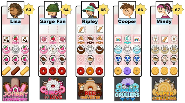 *按照“最后一位顾客(closer)”顺序表(如下图)确定二人到来的日子,到达该天后先暂停进入顾客信息界面,查看该顾客的点单内容,然后一开始就把面包炸好,等到接下第六位顾客的订单后马上制作,制作完再接单然后马上提交,此流程可以达成成就。