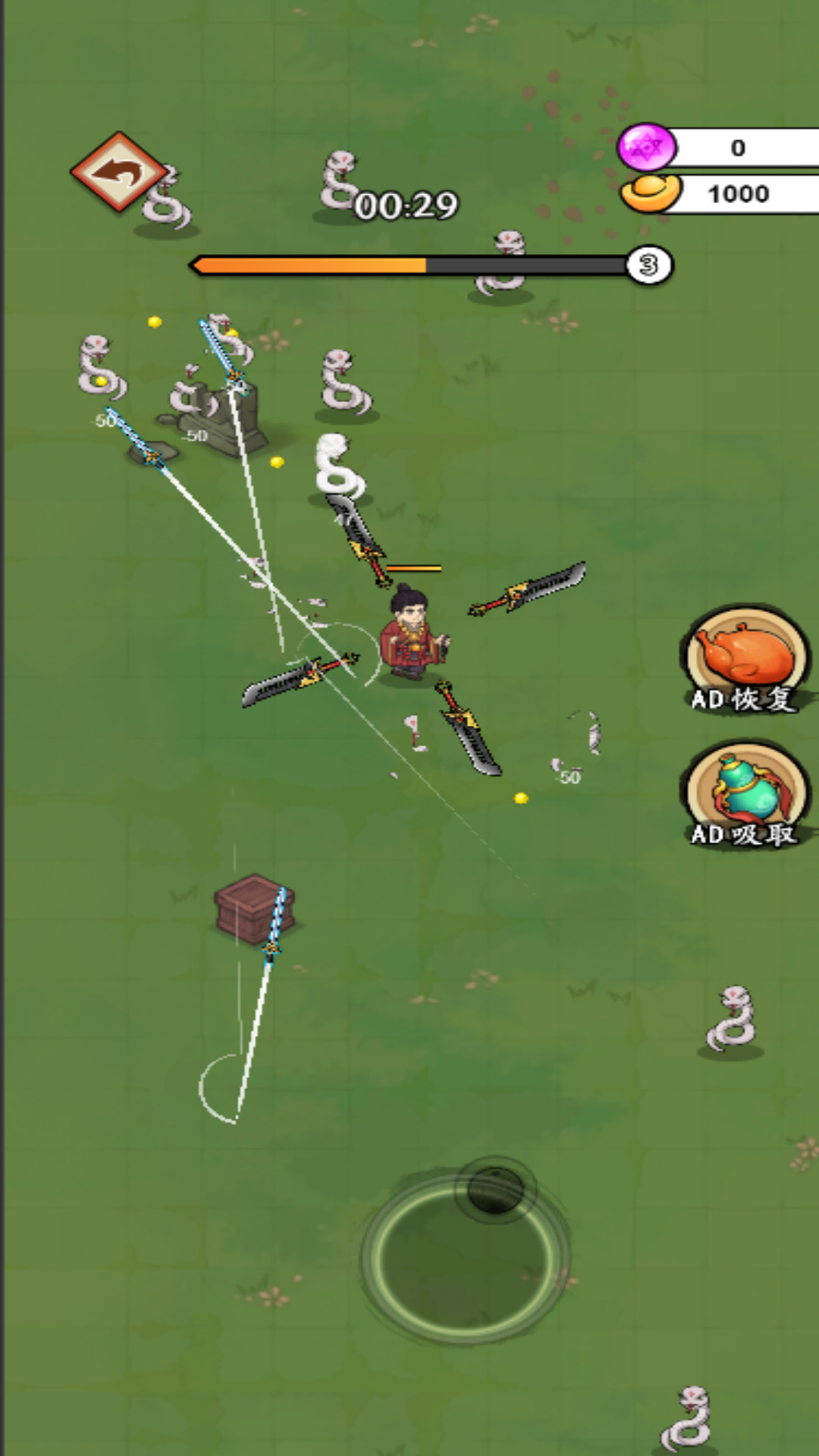 2、竞技场中散落着无数小刀,它们不仅是玩家的武器,更是构建保护圈的关键。玩家需要灵活运用这些资源,以应对来自四面八方的敌人。