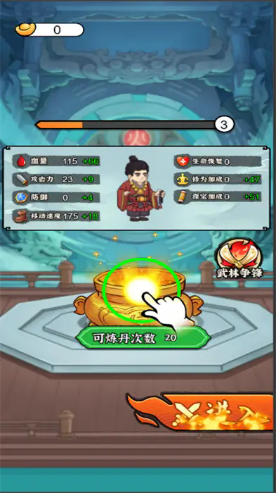 1、采用挂机式玩法设置展现,自动战斗攻击敌人,让玩家体验割草转刀的过程;