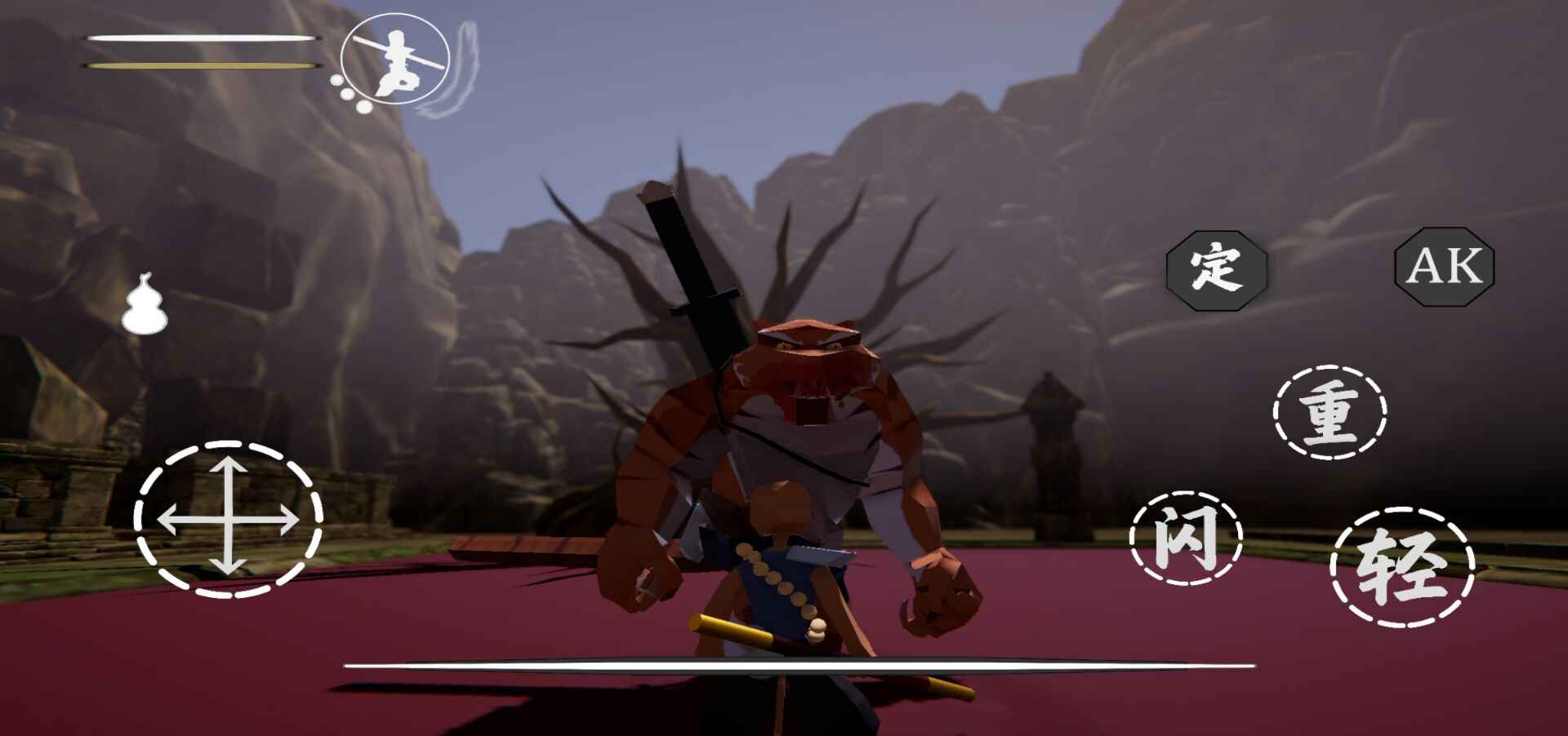 1、游戏采用虚拟摇杆的方式操作角色进行移动,通过点击右侧的攻击按键可以操作天命人对敌人进行攻击;