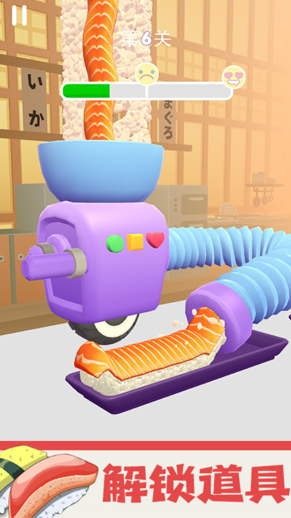 2. 使用高清细腻的3D画面技术,模拟真实的寿司制作过程。