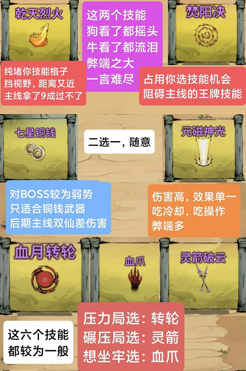 通天塔中,武器选择扇子、铜钱、雪影等,饰品推荐识时之链。技能选择灵箭、天火、铜钱等。深渊则建议根据技能搭配扇子与狂风等武器,注意武器星级与雷罚神剑的使用技巧