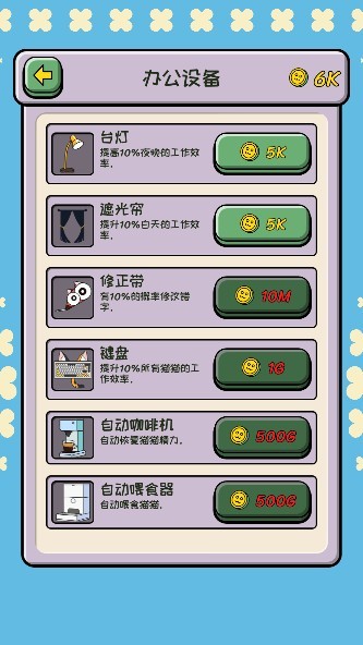 1、游戏中设有强力的福利设施道具,这些道具可以帮助玩家更好地管理猫猫的工作。