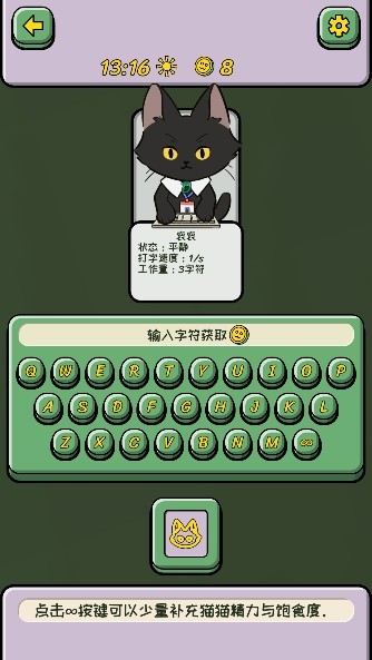 3、玩家需要通过操作猫猫进行打字,这与传统的游戏玩法有所不同,游戏体验很丰富。