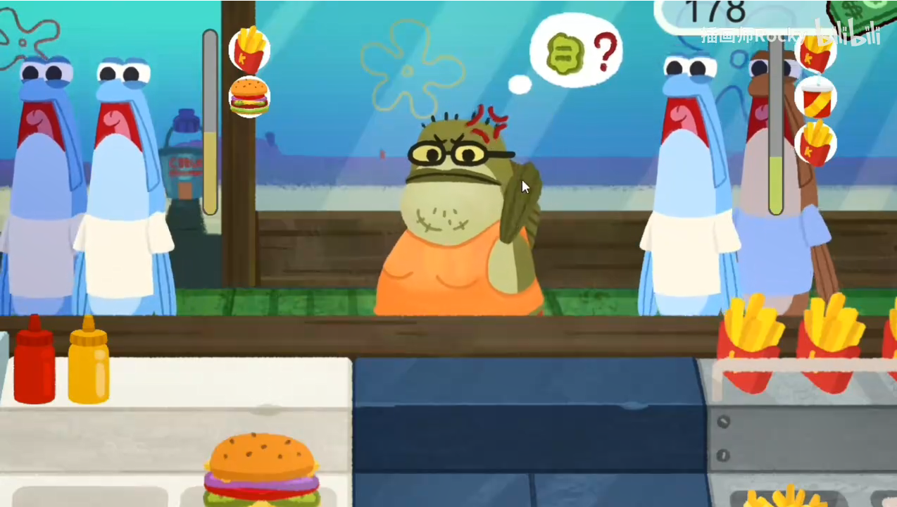 【痞老板】:会偷蟹黄堡,如果被他偷走就游戏结束