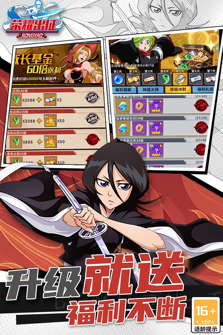 全天候24小时自动推图系统,让你事情两不误,在游戏的同时,你还能吃饭!看电影!洗澡!拒绝浪费你宝贵时间!开始你的冒险之旅吧,闯荡出一名优秀死神的精彩世界!