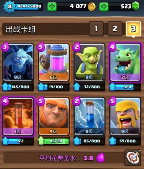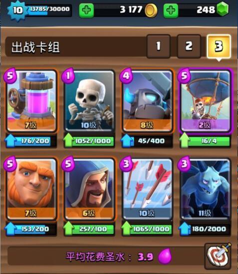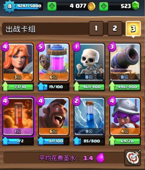 这个卡组的主要是以消耗和一波流为主,利用皇家巨人的远距离攻击和毒药进行消耗,同时我们的法师在后方来保护皇家巨人不被一些人海卡牌骚扰,为其提供好的输出环境。这个卡组前期的时候需要先放采集器来储存和赚取费用,其他卡牌进行防守,如果敌方也出采集器的话,我们可以用毒药进行消耗。在中期的时候,我们在法师对抗了敌方的卡牌时,如果我们的费用较高,那么可以前排搭配一个皇家巨人来进行消耗,法师则用来保护皇家巨人。在后期的时候,我们在其他卡牌解除了敌方的卡时即可打出强力的反击,进行皇家巨人+毒药法术+法师+迷你皮卡的套路,在这一波中,毒药法术能很好的限制敌方的速度,同时进行消耗,皇家巨人为主要输出,迷你皮卡则是对抗敌方出现的高血量卡牌,法师则是对付人海卡,所以这一波是很强的,最后通过不断的消耗来带走对方。
