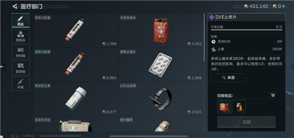 摸金推荐药品:治疗药+手术箱+止痛片,不推荐带护甲维修包,见好就收,成长起来后带更加高级的药品