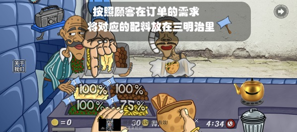 5、玩家需要按照顾客的订单需求进行三明治制作(根据配料上方的数字依次进行点击);
