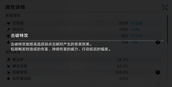 击破特攻:一个能够提高弱点击破相关伤害与效果的角色属性,也只能影响弱点击破相关伤害,无法影响削韧幅度。