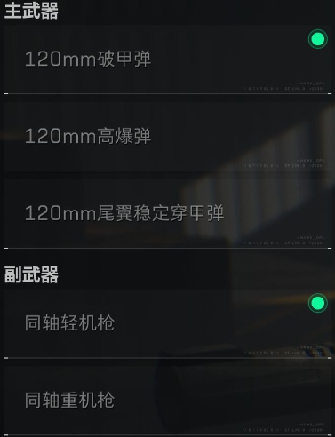 其中副武器同轴机枪有轻机枪和重机枪两种选择:轻机枪射速更快,但射程近且伤害相对较低,重机枪射速较慢,但射程远且单发伤害相对更高。