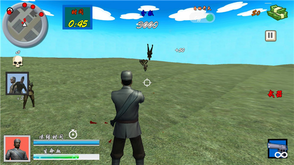 2、瞄准相机并按下右侧按钮进行射击。游戏考验你的视野和适应能力。敌人将如潮水般涌来。你的任务是与敌人战斗到底。